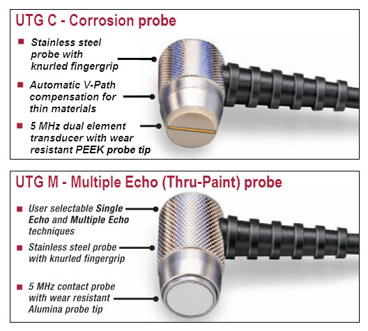 PosiTector UTG M probes determines thickness by measuring the time between at least three consecutive back wall echoes.